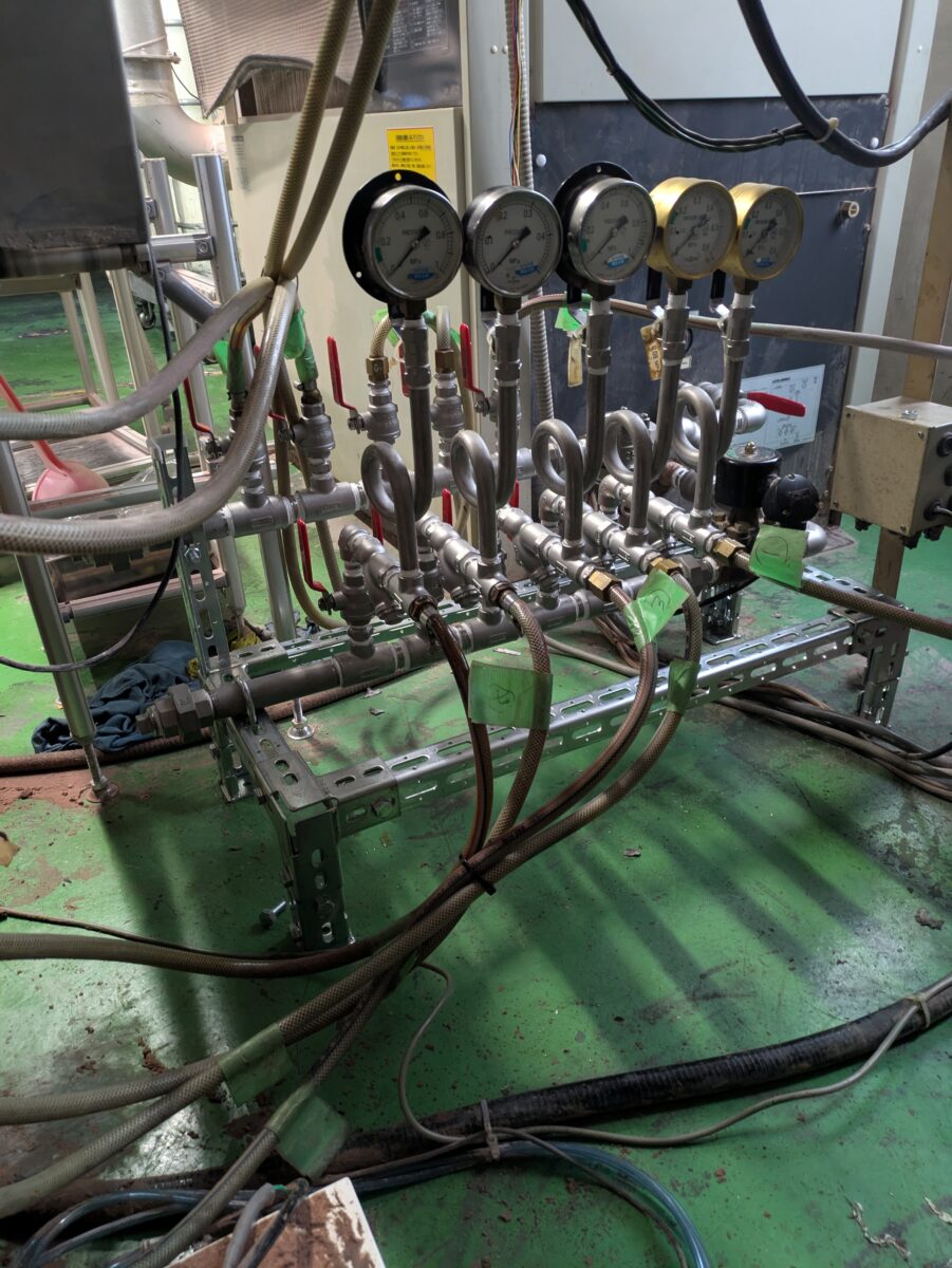 冷却水の水量が減ってきたとのことで配管工事のご依頼レベルアップのためSUSで施工し取廻しは可能な限りスマート化