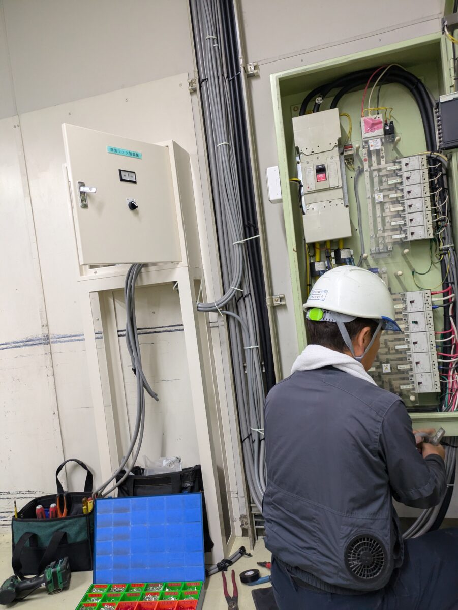 使用されていない機器のファンを活かして工場内温度環境改善のご依頼制御盤を新たに製作・据付して始動